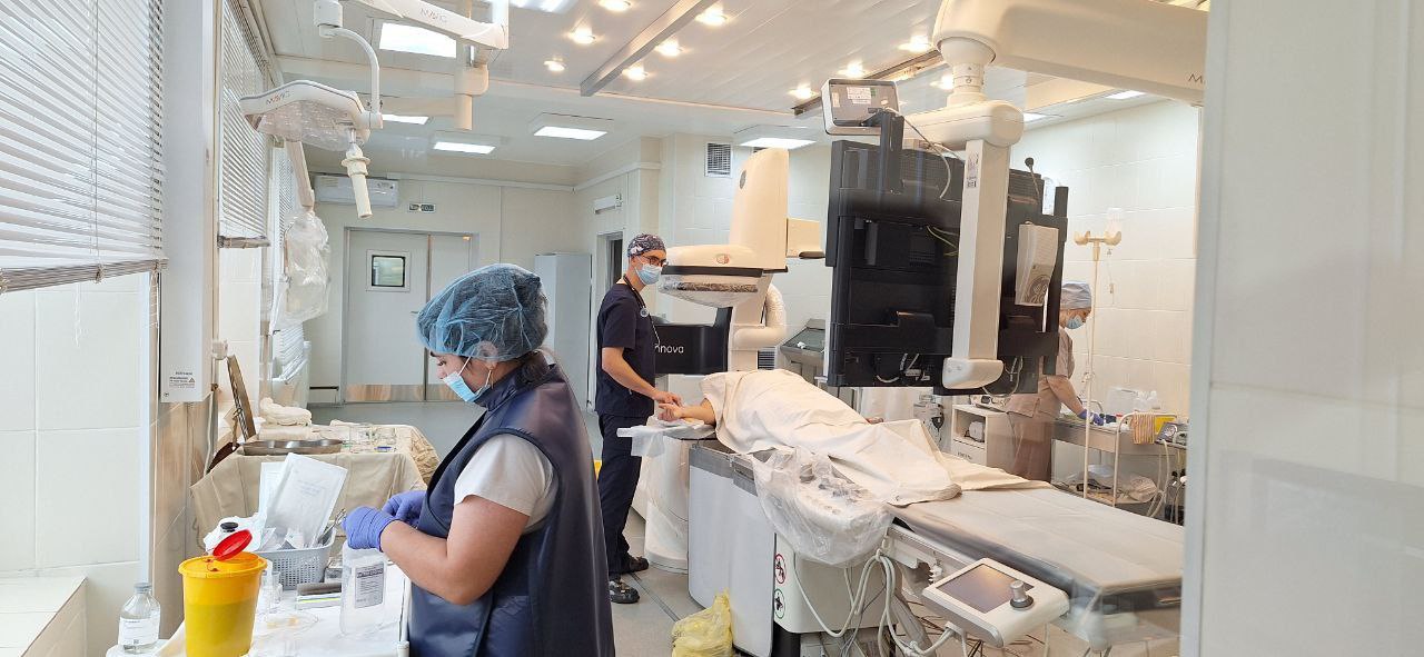 За год специалисты выполнили более 1000 эндоваскулярных вмешательств, из которых свыше 500 были направлены на лечение коронарной патологии. При этом врачи успешно работают не только с сердечными сосудами, но и с периферическими артериями — почечными, сонными, а также артериями нижних конечностей.