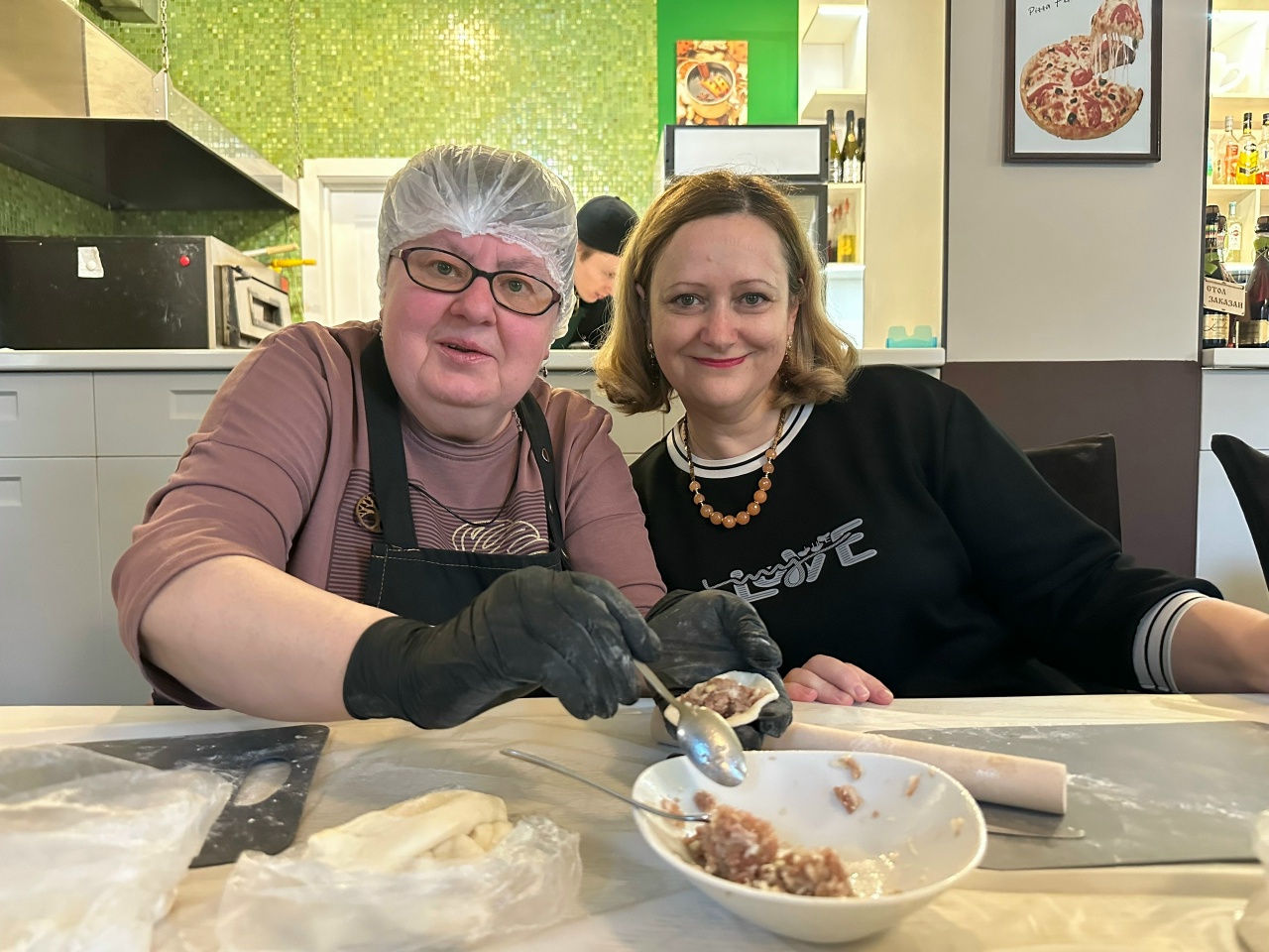 Устроили настоящее кулинарное погружение в нанайскую кухню. Вместе лепили денежные пельмени «Бианси», пробовали папоротник по-бирарски, дарбиту (картофель с копчёной рыбой) и солиму — десерт из ягод с мёдом. Пили таёжный чай. Отдельное спасибо команде Олеси Железняковой, владелице кафе и руководителю Ассоциации рестораторов и отельеров ЕАО: они вдохновляются традиционными рецептами и превращают их в современные, оригинальные блюда. Честно, это очень вкусно!
