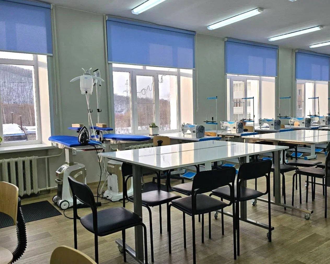 В учебном корпусе техникума более 50 окон заменены на современные стеклопакеты, три мастерские полностью обновлены.