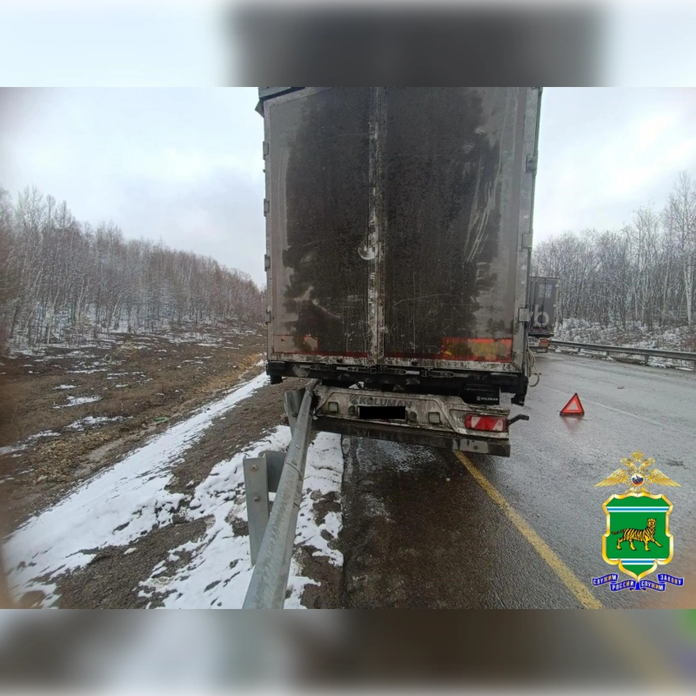 В Облученском районе ЕАО произошло дорожно-транспортное происшествие с участием двух большегрузов. Водитель автомобиля «ФАВ» с полуприцепом не справился с управлением и совершил наезд на стоящий автомобиль «Валдай» с полуприцепом, сообщает ЛАЙВ ДВ.