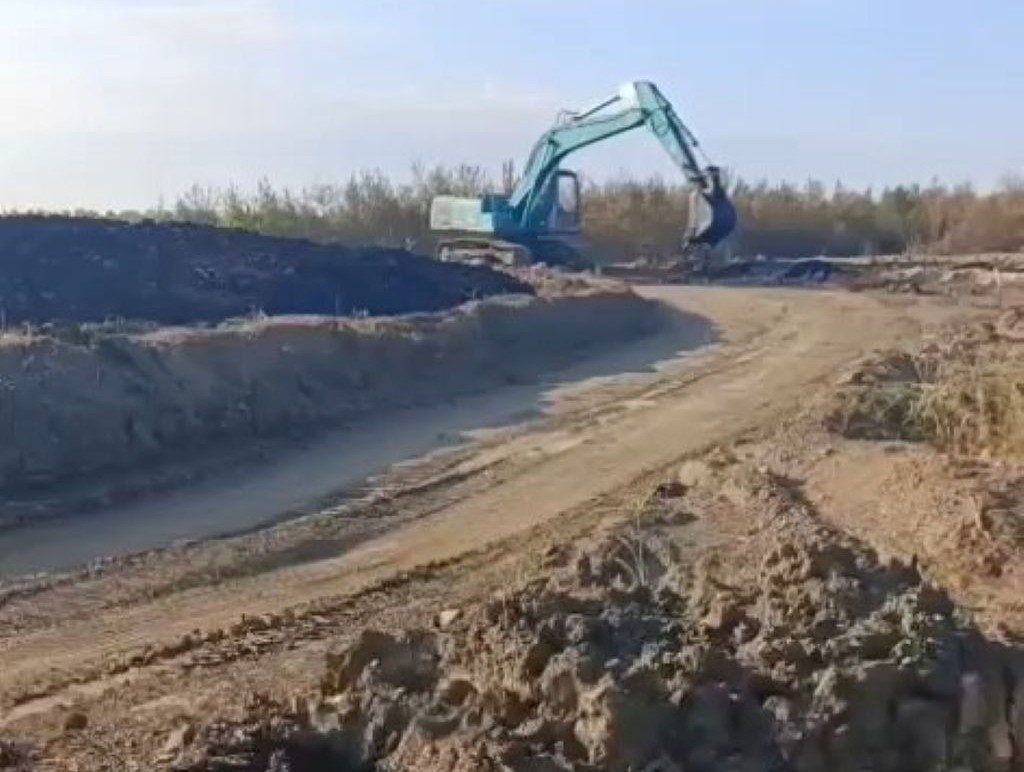 На месте был обнаружен экскаватор, ведущий работы, похожие на работы по захоронению мазута.