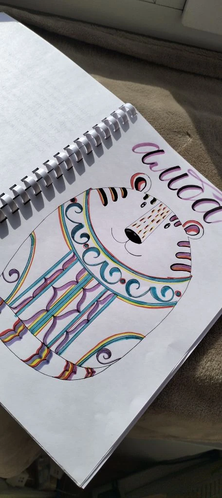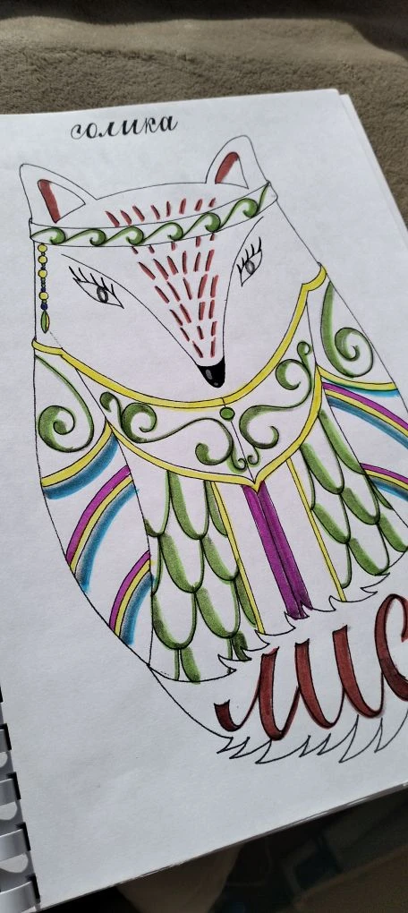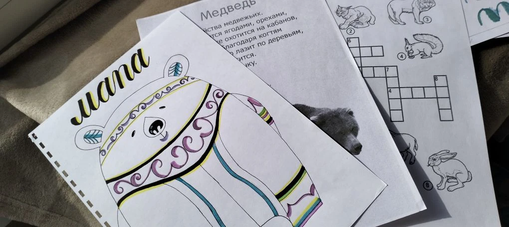 «Я над этим проектом работала последние полгода. Подбирала материал, рисовала и собирала общую канву, — рассказывает Лариса. — Это мини-книга о животных Приамурья. Но! Животные наряжены в национальные халаты с орнаментом. Задумка: каждый оживляет, украшает страничку книги при помощи туши и аквабраша по заданному орнаменту. Также в книге название животных на двух языках: русском и нанайском».