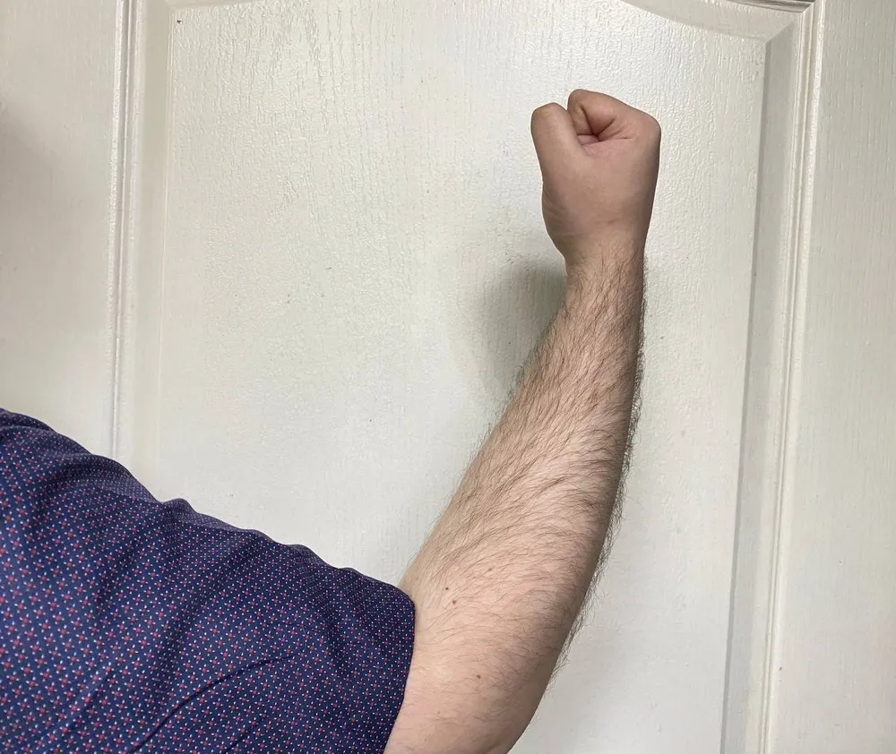 Утром 09.04.2025 женщина с ребенком выходила из квартиры на лестничную площадку. В этот момент ребенок по неосторожности толкнул входную дверь, из-за чего она ударилась об соседскую дверь. Мужчина вышел из квартиры и со всей силы ударил ногой по её двери. Женщина не успела убрать левую руку из дверного проёма и от удара дверью ей прищемило пальцы. В результате заявительнице причинены телесные повреждения в виде перелома ногтевых фаланг левой кисти. Пострадавшая длительное время проходила лечение, испытывала физические и нравственные страдания.