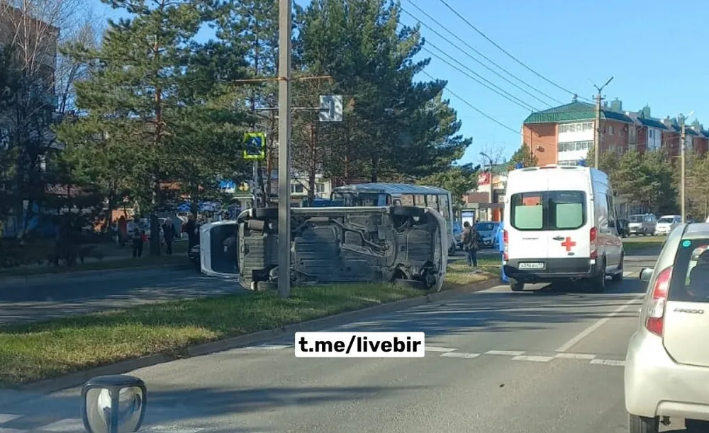 Опрокинулось авто в районе остановки «Дом быта» в Биробиджане