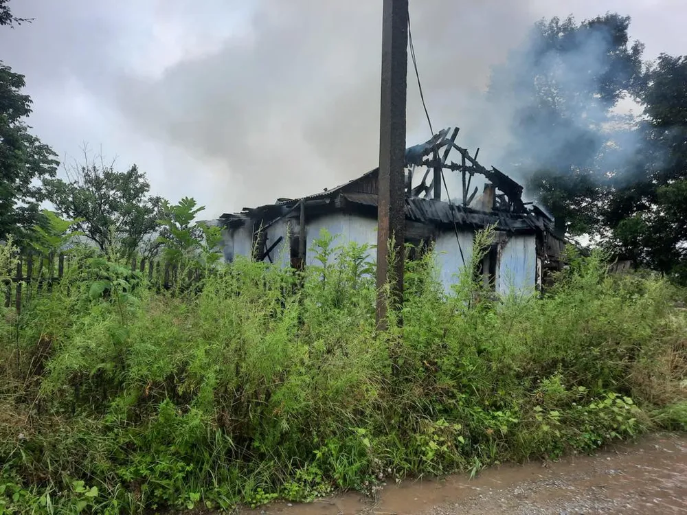 В результате пожара дом уничтожен огнём по всей площади. Пострадавших нет.