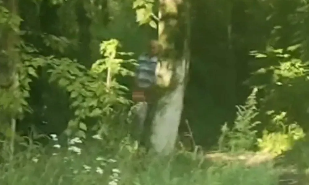 Одному из прохожих удалось снять полуголого мужчину на телефон. Увидев камеру, пенсионер поспешил уйти вглубь рощи.