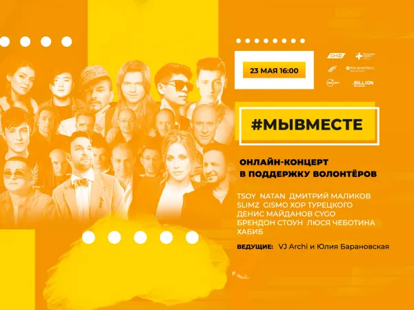 Посмотреть онлайн-концерт любимых звёзд есть возможность у жителей ЕАО. Российские музыканты 23 мая исполнят свои произведения в поддержку волонтеров, которые в период распространения коронавируса помогают пожилым людям и врачам. Ведущие: VJ Archi и Юлия Барановская. В программе – выступления таких звезд, как Хор Турецкого, TSOY, Дмитрий Маликов, NATAN, Люся Чеботина, Брендон Стоун, Сygo, Хабиб, Slimz. Мероприятие пройдет на площадке студии Billion Records, пишет LIVE Биробиджан.