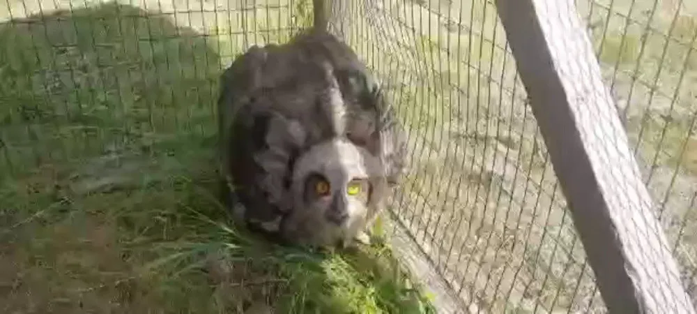 Краснокнижную особь обнаружили на обочине дороги. Молодая птица, по всей видимости, только-только расправила крылья и начала вылетать из гнезда, поэтому при виде людей филин особо не сопротивлялся - далеко убежать или улететь он не мог.