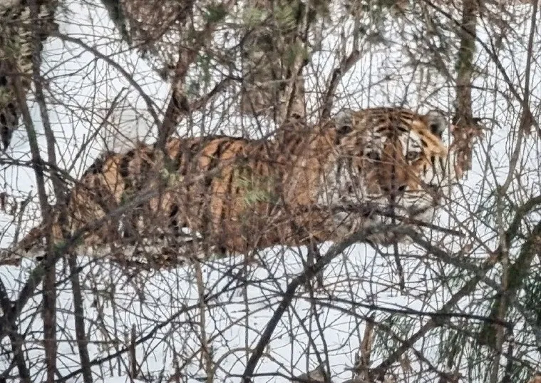 Напомним, 16 января на 6-7 км от п. Тёплые ключи Облученского района ЕАО местным фотографом также был замечен полосатый хищник. По словам очевидца, хозяин тайги ему попался очень крупный.