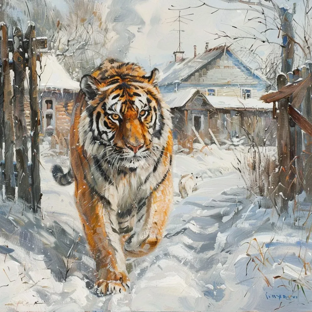 Немедленно сообщите в Единую дежурно-диспетчерскую службу по номеру 112. Не пытайтесь самостоятельно подходить к животному или преследовать его.Ситуация находится на контроле. Специалисты работают над безопасным возвращением тигра в естественную среду обитания.