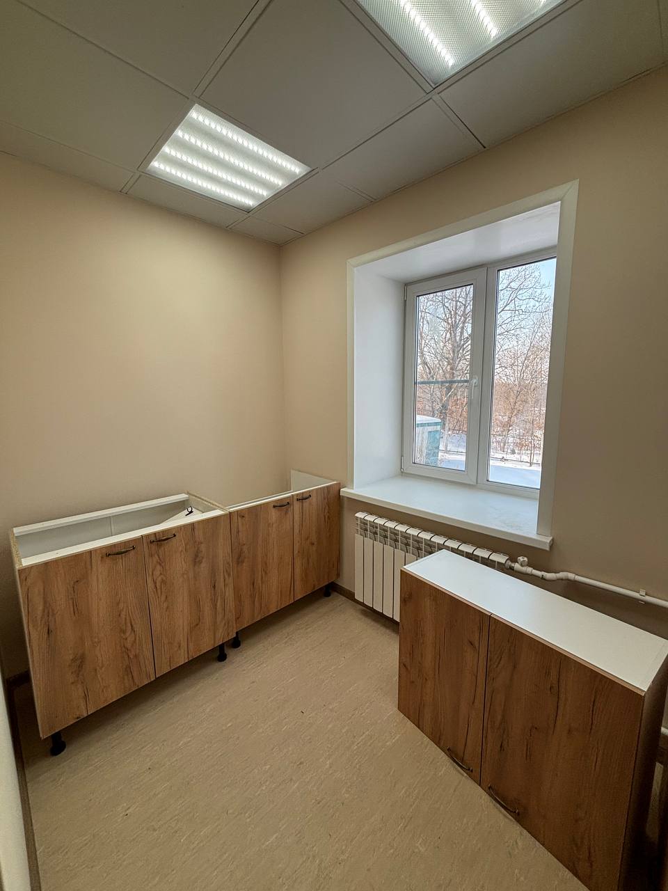 Идут работы и в обособленно расположенном медицинском пункте, в котором будут оборудованы 2 лазарета на 4 человека с отдельными санузлами. В здании предусмотрены также кухня, помещение для медработника и процедурный кабинет. Окна здесь тоже заменены на новые. Предстоит еще обшивка цоколя, ремонт отмостки и входного крыльца.