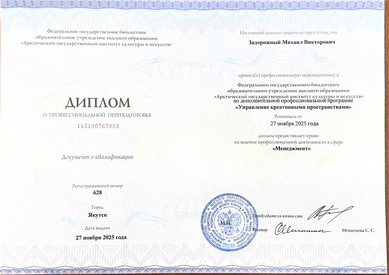 Основатели культурно-туристического бренда «Бирария» Александр Музыка и Михаил Задорожный успешно завершили обучение по программе профессиональной переподготовки «Управление креативными пространствами» в Арктическом государственном институте культуры и искусств в г. Якутск. Это стало возможно благодаря поддержке КРДВ, сообщает LIVE DV.