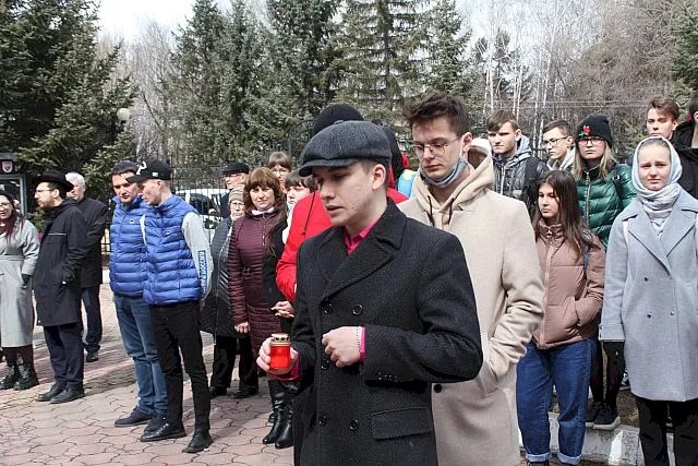 В знак памяти и скорби все участники митинга возложили к мемориалу камни как символы памяти и поставили неугасимые свечи. Память погибших они почтили минутой молчания.